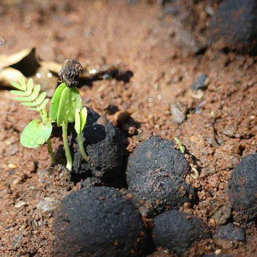 Seedballs are seeds encapsulated in a nutrient-rich coating made of biochar and organic materials. This coating protects the seeds, enhances germination rates, and allows for easy dispersal in arid and semi-arid regions, even under harsh conditions.